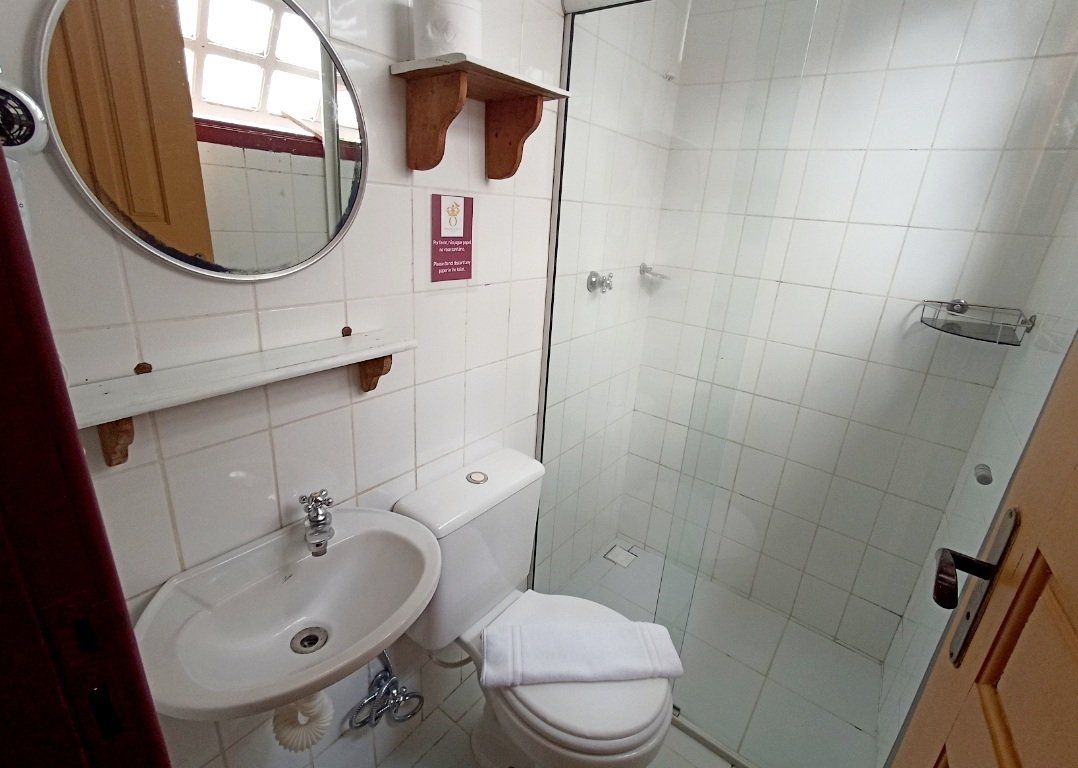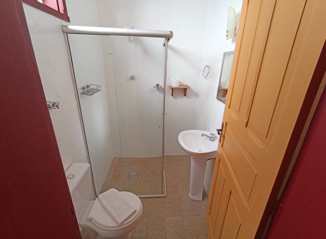 O apartamento Gerânio hospeda até duas pessoas. Este quarto possui cama queen-size, banheiro privativo com Box Blindex, além da TV de tela plana de 32" com canais a cabo da SKY.