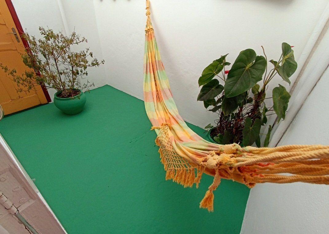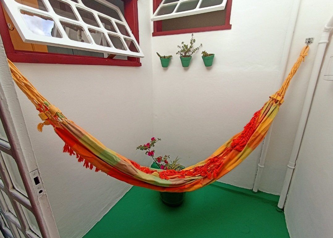 Este apartamento tem aproximadamente 18 metros quadrados, com ventilador, secador de cabelos e cortinas escurecidas e frigobar. Além disso, este apartamento dispõe de um terraço externo com rede.