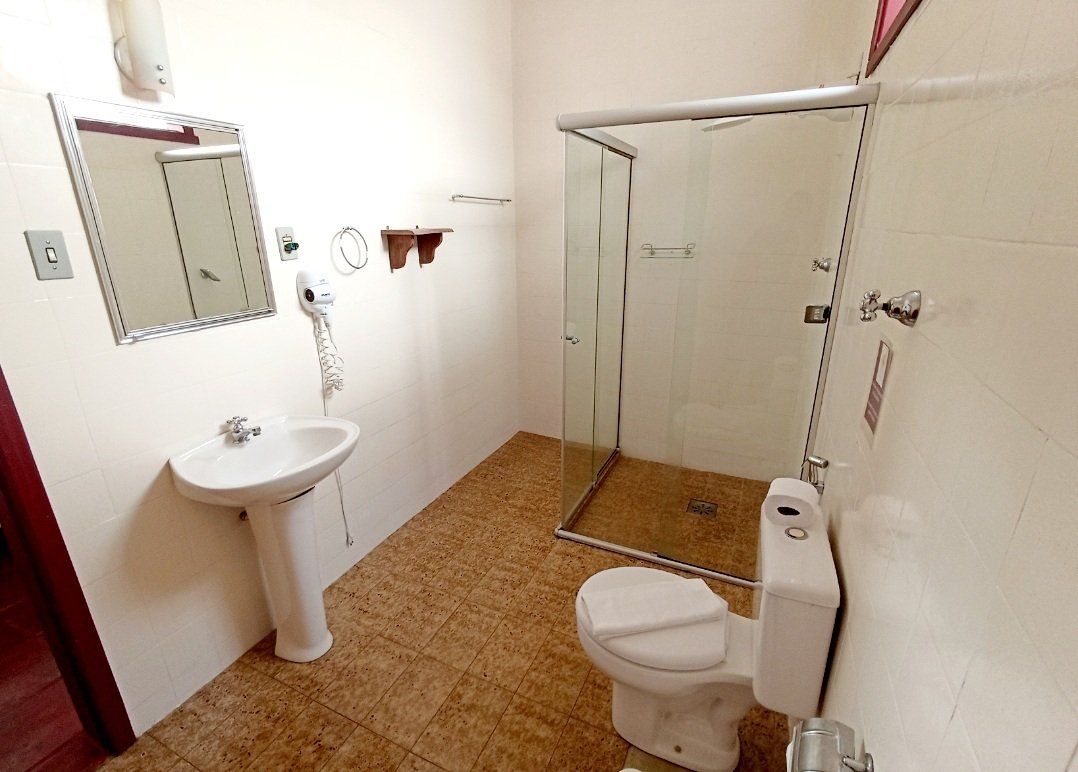 O apartamento Antúrio hospeda até duas pessoas. Este quarto possui cama queen-size, banheiro privativo com Box Blindex, além da TV de tela plana de 32" com canais a cabo da SKY.
