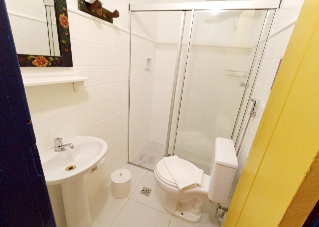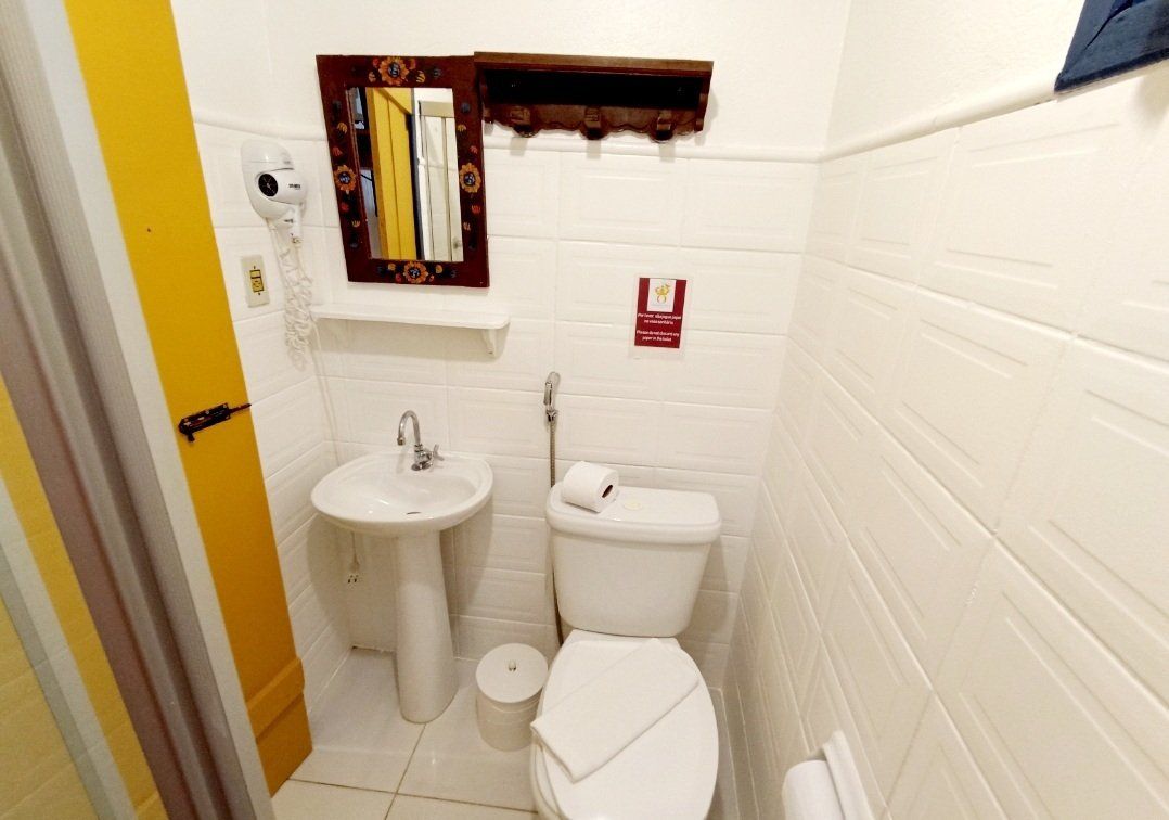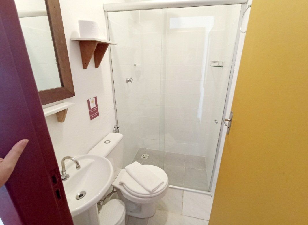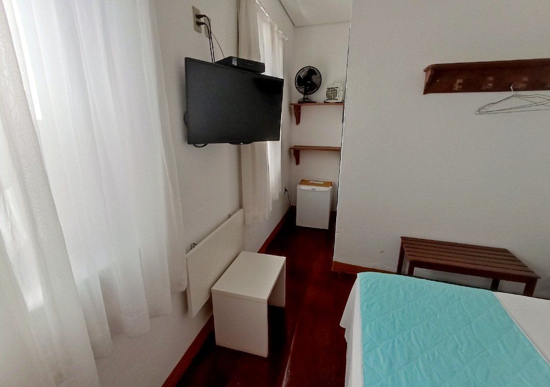 Atenção: Este apartamento tem aproximadamente 10 metros quadrados (quarto + banheiro), com ventilador, aquecedor elétrico, secador de cabelos e cortinas escurecidas e frigobar. Este é nosso menor quarto e a janela é tipo basculante.