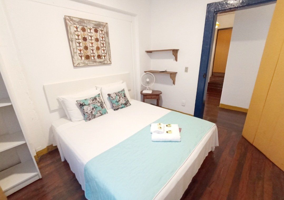 Este apartamento tem aproximadamente 30 metros quadrados, com ventilador, secador de cabelos e cortinas escurecidas e frigobar. Além disso, este apartamento dispõe de um terraço externo com rede.